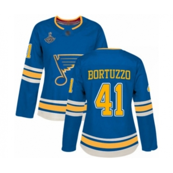 >Women's St. Louis Blues #41 Robert Bortuzzo Authentic Navy Blue Alternate 2019 Stanley Cup Champions Hockey Jersey