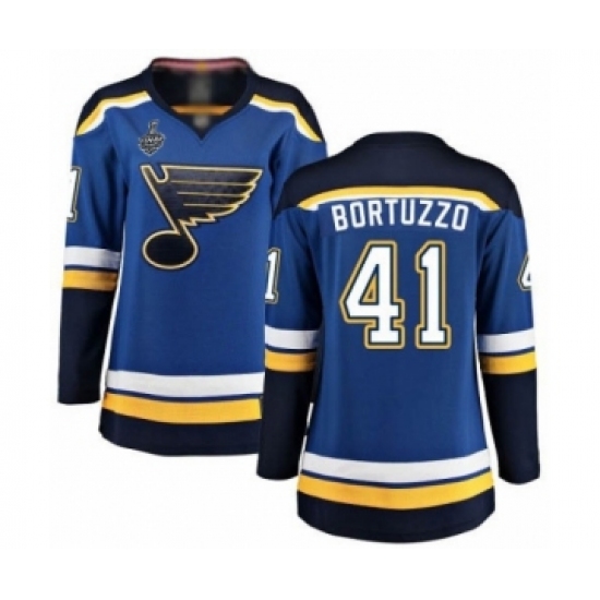 >Women's St. Louis Blues #41 Robert Bortuzzo Fanatics Branded Royal Blue Home Breakaway 2019 Stanley Cup Final Bound Hockey Jersey