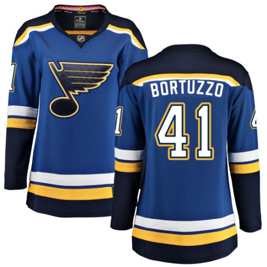 Home>NHL>St. Louis Blues>Robert Bortuzzo>Women's St. Louis Blues #41 Robert Bortuzzo Fanatics Branded Royal Blue Home Breakaway NHL Jersey