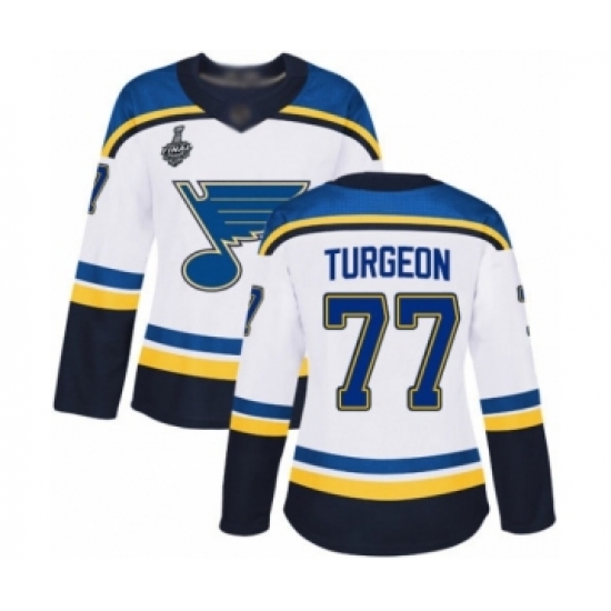 Women's St. Louis Blues #77 Pierre Turgeon Authentic White Away 2019 Stanley Cup Final Bound Hockey Jersey