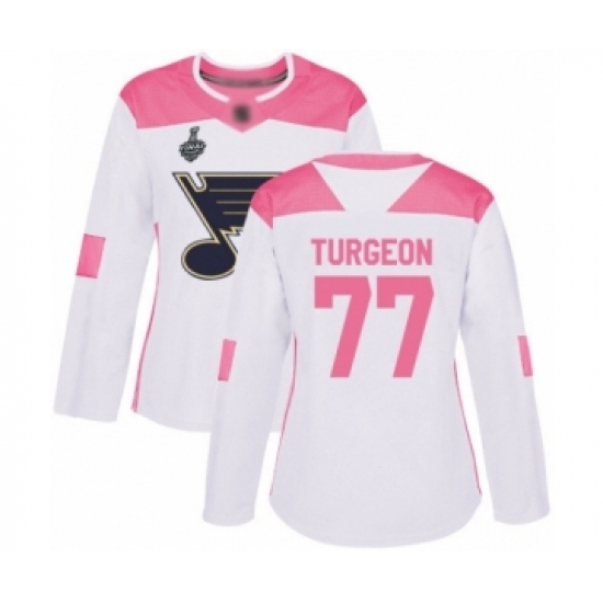 Women's St. Louis Blues #77 Pierre Turgeon Authentic White Pink Fashion 2019 Stanley Cup Final Bound Hockey Jersey