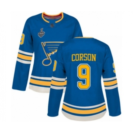 Women's St. Louis Blues #9 Shayne Corson Authentic Navy Blue Alternate 2019 Stanley Cup Final Bound Hockey Jersey