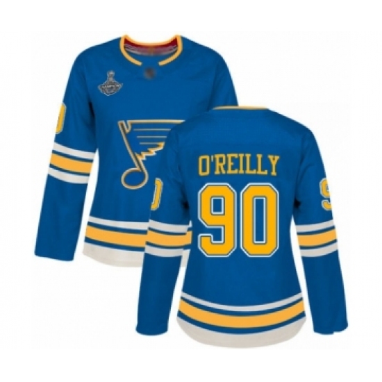 Women's St. Louis Blues #90 Ryan O'Reilly Authentic Navy Blue Alternate 2019 Stanley Cup Champions Hockey Jersey
