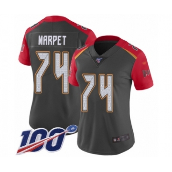 >Women's Tampa Bay Buccaneers #74 Ali Marpet Limited Gray Inverted Legend 100th Season Football Jersey