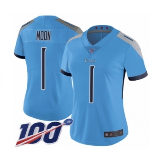 Women's Tennessee Titans #1 Warren Moon Light Blue Alternate Vapor Untouchable Limited Player 100th Season Football Jersey