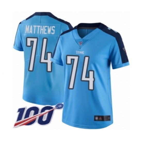 Women's Tennessee Titans #74 Bruce Matthews Limited Light Blue Rush Vapor Untouchable 100th Season Football Jersey