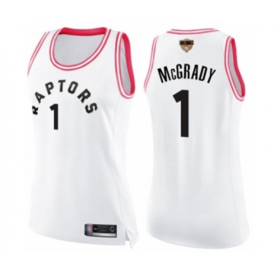 Women's Toronto Raptors #1 Tracy Mcgrady Swingman White Pink Fashion 2019 Basketball Finals Bound Jersey