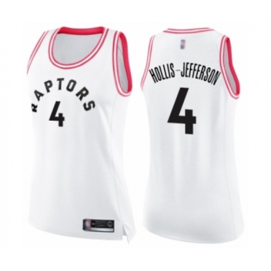 >Women's Toronto Raptors #4 Rondae Hollis-Jefferson Swingman White Pink Fashion Basketball Jersey