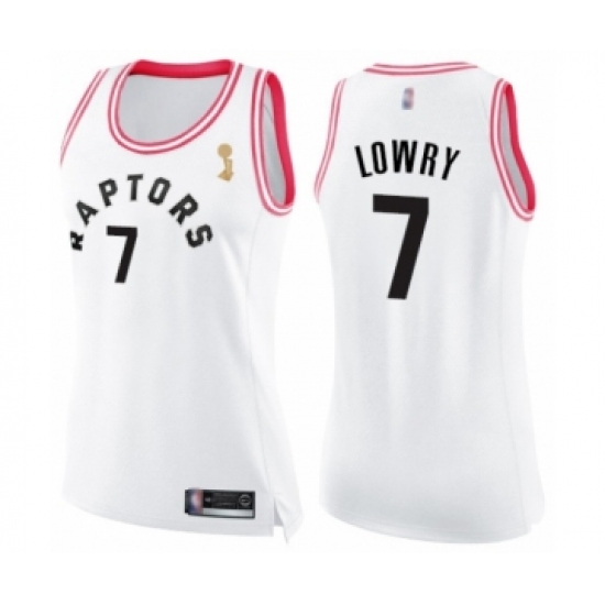>Women's Toronto Raptors #7 Kyle Lowry Swingman White Pink Fashion 2019 Basketball Finals Champions Jersey