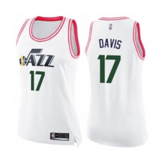 Women's Utah Jazz #17 Ed Davis Swingman White Pink Fashion Basketball Jersey
