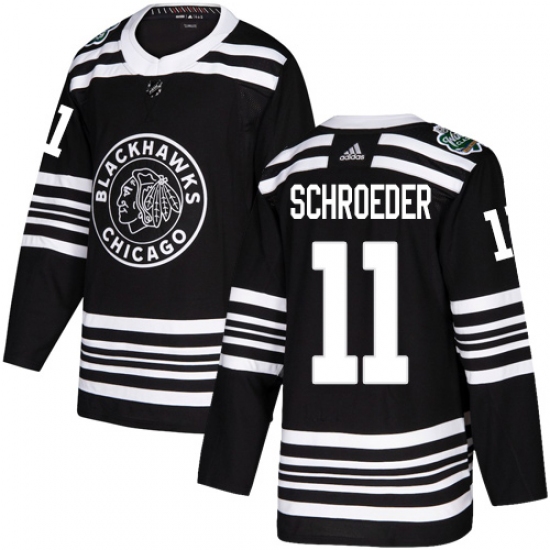 Youth Adidas Chicago Blackhawks #11 Jordan Schroeder Authentic Black 2019 Winter Classic NHL Jersey