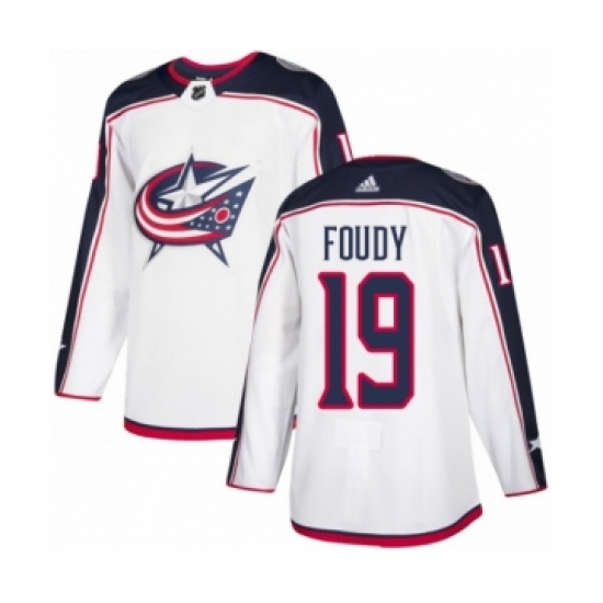 >Youth Adidas Columbus Blue Jackets #19 Liam Foudy Authentic White Away NHL Jersey