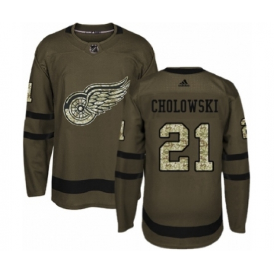 Youth Adidas Detroit Red Wings #21 Dennis Cholowski Premier Green Salute to Service NHL Jersey