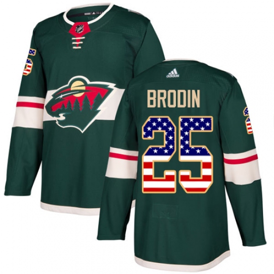 Home>NHL>Minnesota Wild>Jonas Brodin>Youth Adidas Minnesota Wild #25 Jonas Brodin Authentic Green USA Flag Fashion NHL Jersey