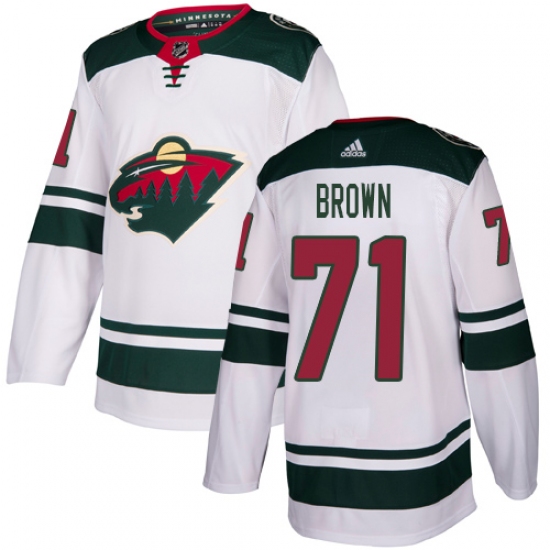 >Youth Adidas Minnesota Wild #71 J T Brown Authentic White Away NHL Jersey