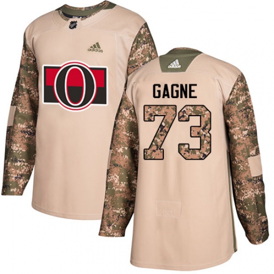 >Youth Adidas Ottawa Senators #73 Gabriel Gagne Authentic Camo Veterans Day Practice NHL Jersey