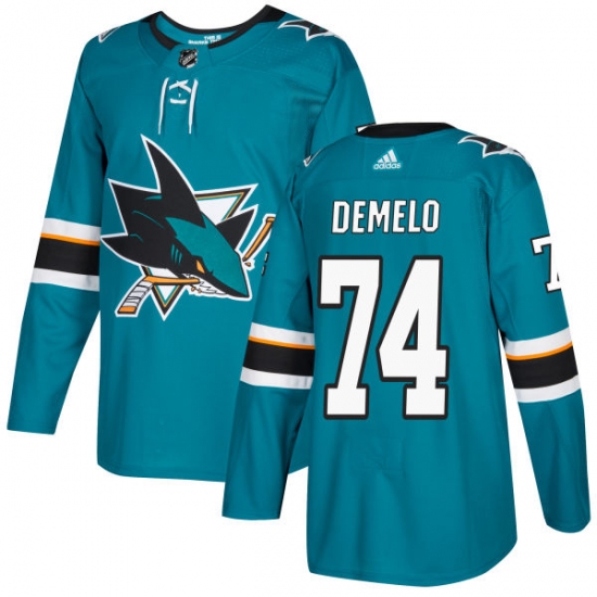 Home>NHL>San Jose Sharks>Dylan DeMelo>Youth Adidas San Jose Sharks #74 Dylan DeMelo Premier Teal Green Home NHL Jersey
