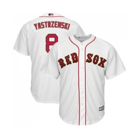 Youth Boston Red Sox #8 Carl Yastrzemski Authentic White 2019 Gold Program Cool Base Baseball Jersey