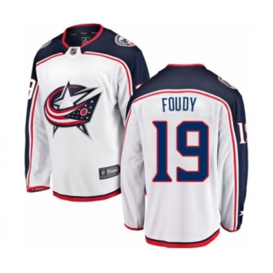 Youth Columbus Blue Jackets #19 Liam Foudy Authentic White Away Fanatics Branded Breakaway NHL Jersey