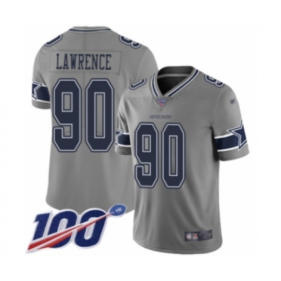 >Youth Dallas Cowboys #90 DeMarcus Lawrence Limited Gray Inverted Legend 100th Season Football Jersey
