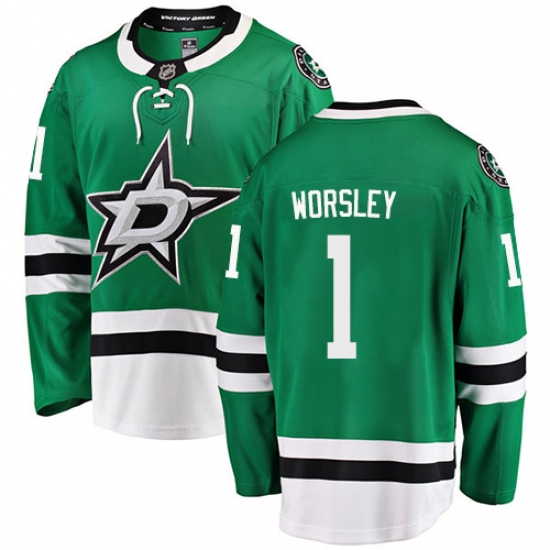 Youth Dallas Stars #1 Gump Worsley Authentic Green Home Fanatics Branded Breakaway NHL Jersey
