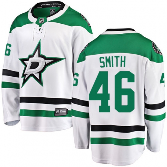 Home>NHL>Dallas Stars>Gemel Smith>Youth Dallas Stars #46 Gemel Smith Authentic White Away Fanatics Branded Breakaway NHL Jersey