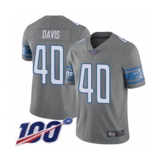 >Youth Detroit Lions #40 Jarrad Davis Limited Steel Rush Vapor Untouchable 100th Season Football Jersey