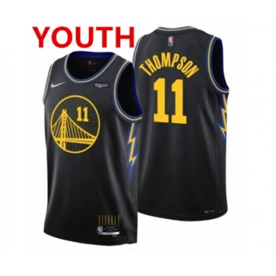>Youth Golden State Warriors #11 Klay Thompson 75th Anniversary Black Stitched Basketball Jersey
