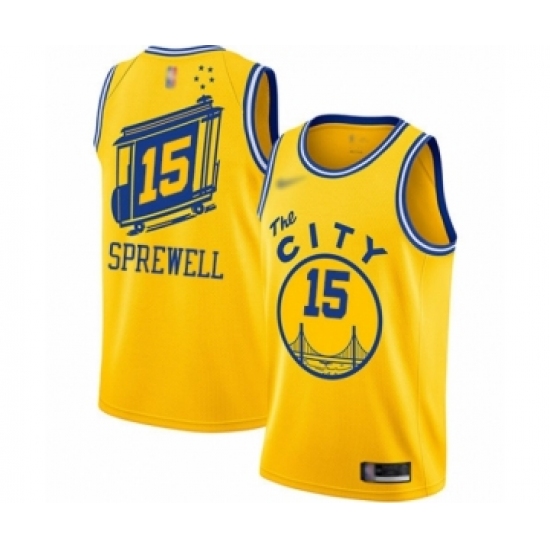 Men's Golden State Warriors #15 Latrell Sprewell Yellow Swingman 2019 Basketball Finals Bound Jersey - Earned Edition