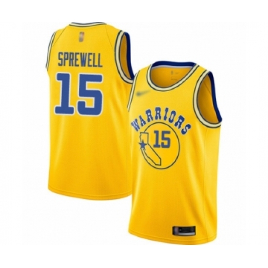 >Youth Golden State Warriors #15 Latrell Sprewell Swingman Gold Hardwood Classics Basketball Jersey
