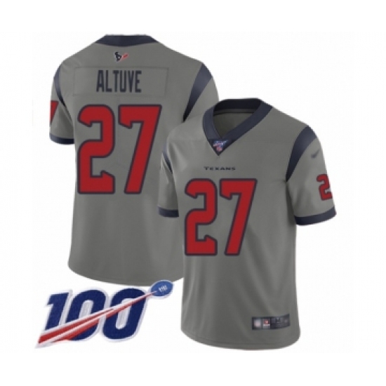 >Youth Houston Texans #27 Jose Altuve Limited Gray Inverted Legend 100th Season Football Jersey