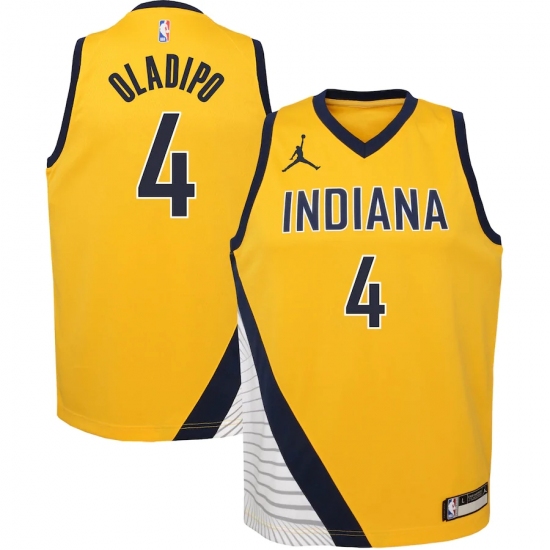Youth Indiana Pacers #4 Victor Oladipo Jordan Brand Gold 2020-21 Swingman Jersey