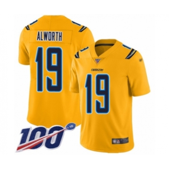 >Youth Los Angeles Chargers #19 Lance Alworth Limited Gold Inverted Legend 100th Season Football Jersey