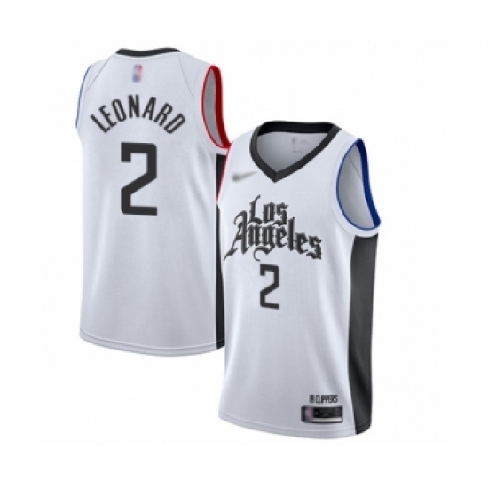 >Youth Los Angeles Clippers #2 Kawhi Leonard Swingman White Basketball Jersey - 2019-20 City Edition