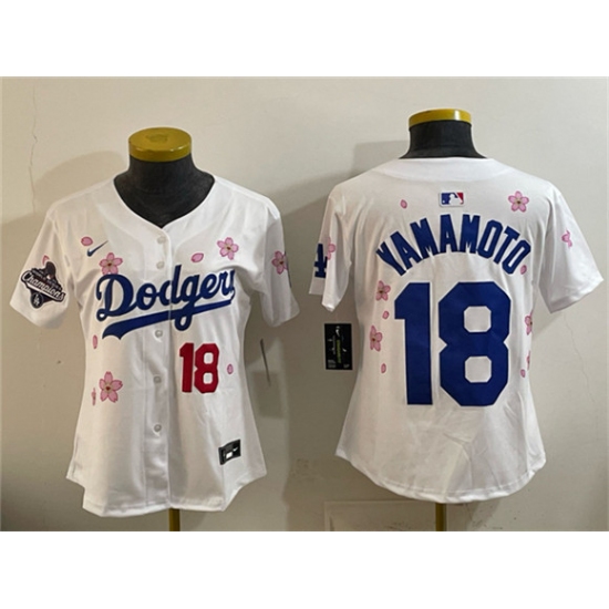 Youth Los Angeles Dodgers #18 Yoshinobu Yamamoto White 2025 World Series Champions Tokyo Series Limited Stitched Baseball Jersey