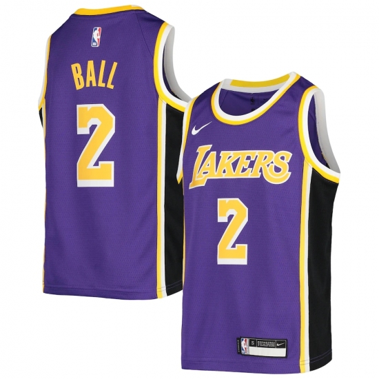 >Youth Los Angeles Lakers #2 Lonzo Ball Nike Purple 2020-21 Swingman Jersey