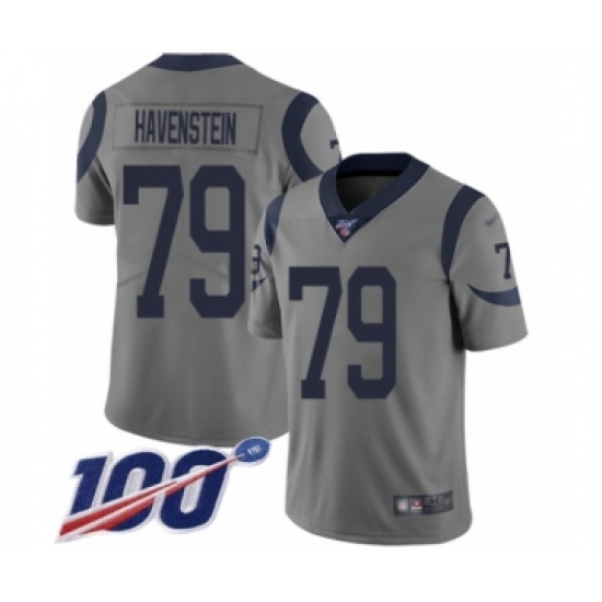 >Youth Los Angeles Rams #79 Rob Havenstein Limited Gray Inverted Legend 100th Season Football Jersey