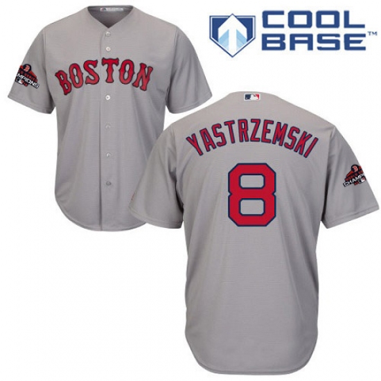 >Youth Majestic Boston Red Sox #8 Carl Yastrzemski Authentic Grey Road Cool Base 2018 World Series Champions MLB Jersey