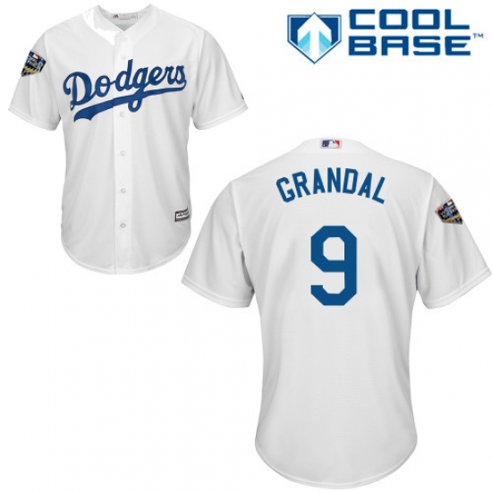 Youth Majestic Los Angeles Dodgers #9 Yasmani Grandal Authentic White Home Cool Base 2018 World Series MLB Jersey