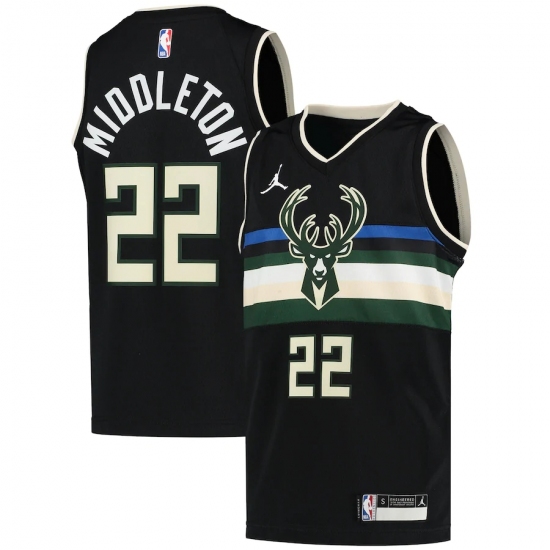 Youth Milwaukee Bucks #22 Khris Middleton Jordan Brand Black 2020-21 Swingman Player Jersey