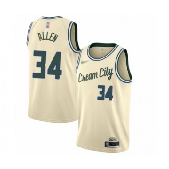 >Youth Milwaukee Bucks #34 Ray Allen Swingman Cream Basketball Jersey - 2019 20 City Edition