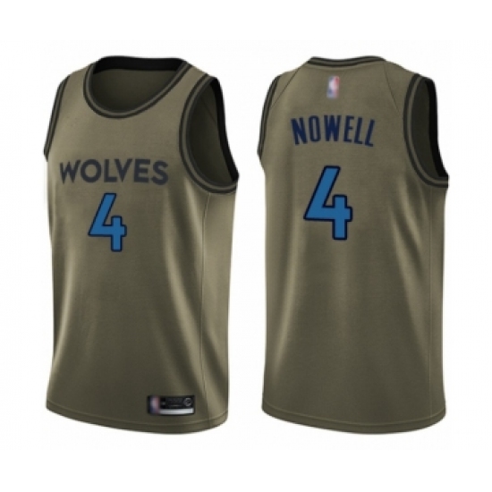 >Youth Minnesota Timberwolves #4 Jaylen Nowell Swingman Green Salute to Service Basketball Jersey