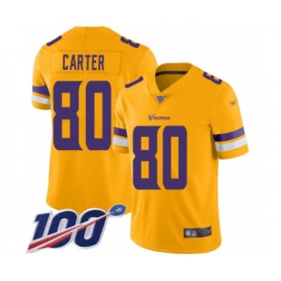 Men's Minnesota Vikings #80 Cris Carter Limited Gold Inverted Legend 100th Season Football Jersey