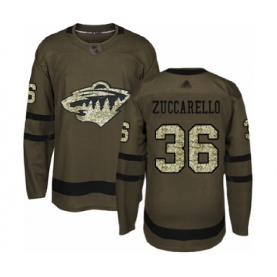 >Youth Minnesota Wild #36 Mats Zuccarello Authentic Green Salute to Service Hockey Jersey
