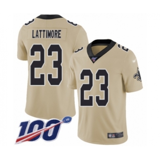 >Youth New Orleans Saints #23 Marshon Lattimore Limited Gold Inverted Legend 100th Season Football Jersey
