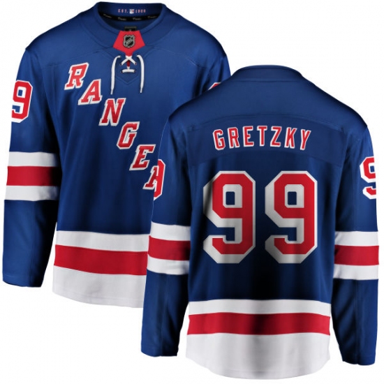 Home>NHL>New York Rangers>Wayne Gretzky>Youth New York Rangers #99 Wayne Gretzky Fanatics Branded Royal Blue Home Breakaway NHL Jersey