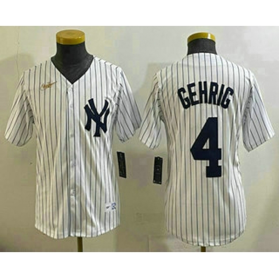 >Youth New York Yankees #4 Lou Gehrig White Throwback Stitched Cool Base Nike Jersey