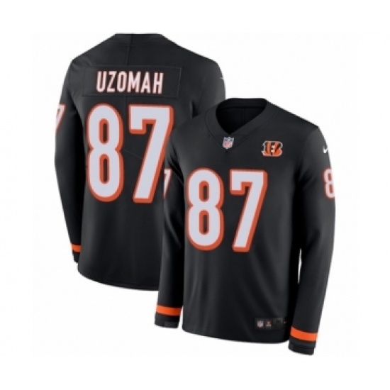 Youth Nike Cincinnati Bengals #87 C.J. Uzomah Limited Black Therma Long Sleeve NFL Jersey