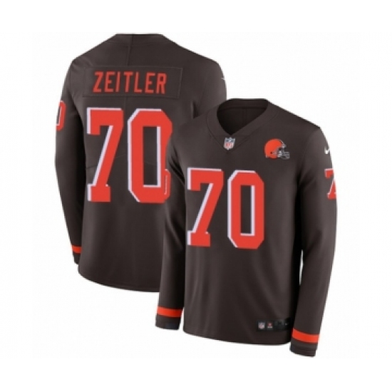 Men's Nike Cleveland Browns #70 Kevin Zeitler Limited Brown Therma Long Sleeve NFL Jersey
