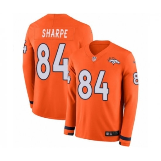 >Youth Nike Denver Broncos #84 Shannon Sharpe Limited Orange Therma Long Sleeve NFL Jersey